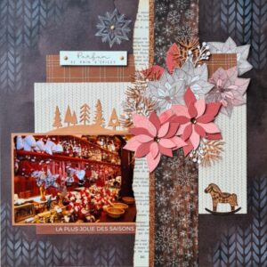 Bonjour, Voici la double page que je proposerai en atelier ce mois de décembre. Une page au doux parfum de pain d’épices, cannelle et chocolat. Voici la première page (photos