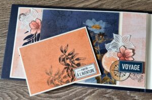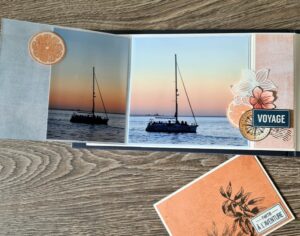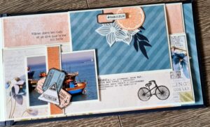 Je ne vous ai pas encore montré, dans son intégralité, l’album Un Air de Vacances, proposé en atelier récemment.