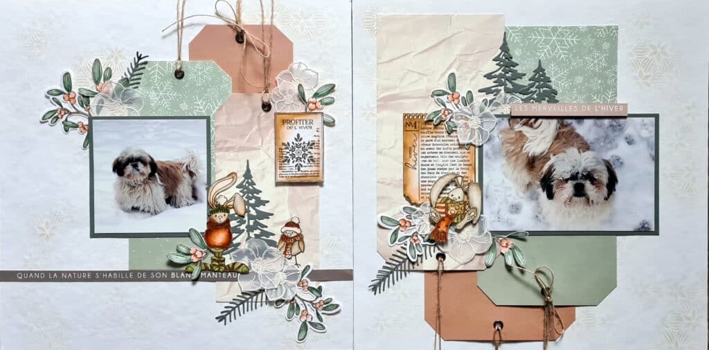 - réaliser chaque mois une double page, avec tout le matériel fourni (adapté à vos photos)