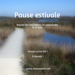 En vacances du 1er au 20 août. La boutique reste ouverte, les expéditions reprennent dès le 21.