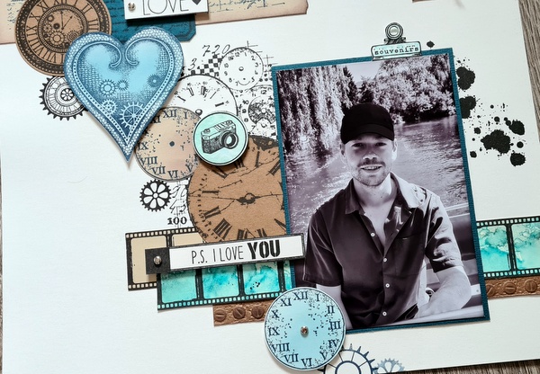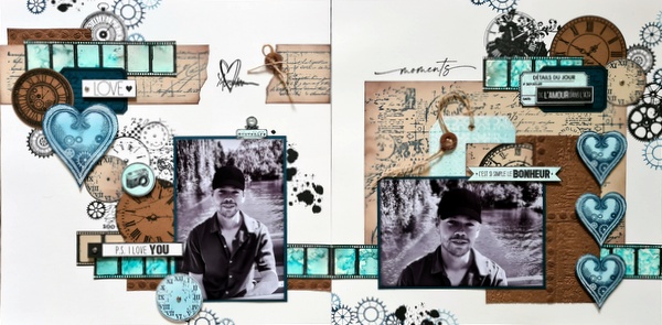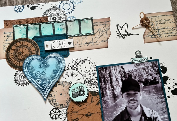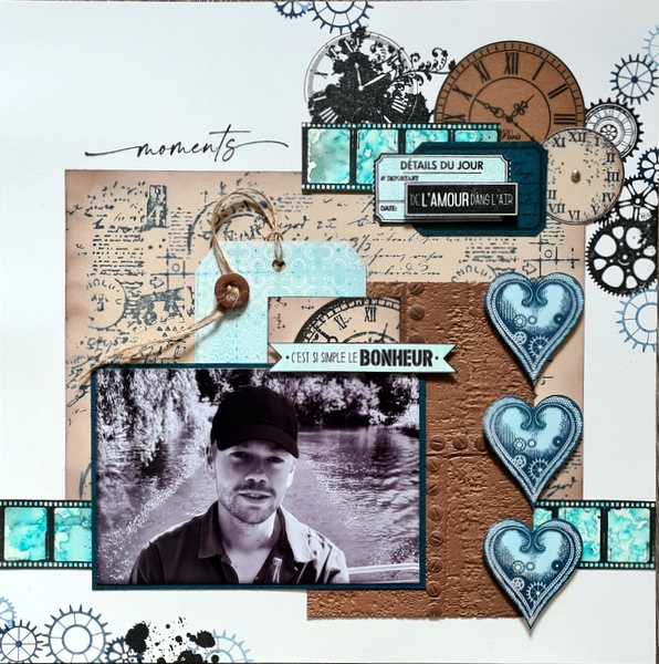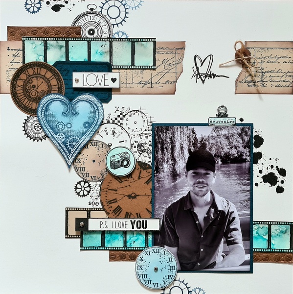 Ce mois-ci, la sortie de la collection Steampunk de Lavinia Stamps m’a donné envie de créer une page masculine et 100% tampons.