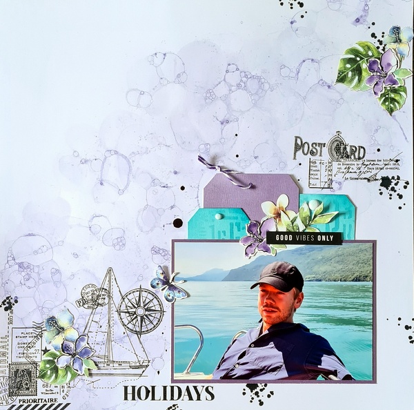 - Tampons Clear Chou & Flowers collection Nautique (j’ai prolongé la remise de 20 % :-)) : Holidays, Navigation, carte Vintage, et Postcard.