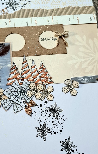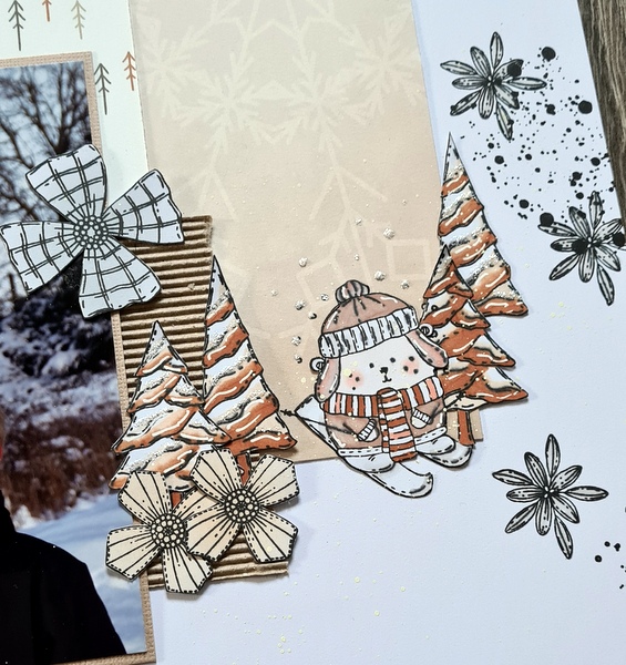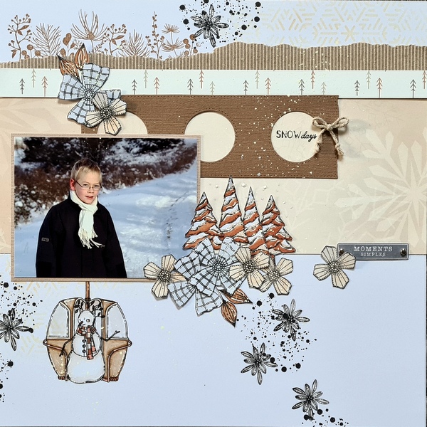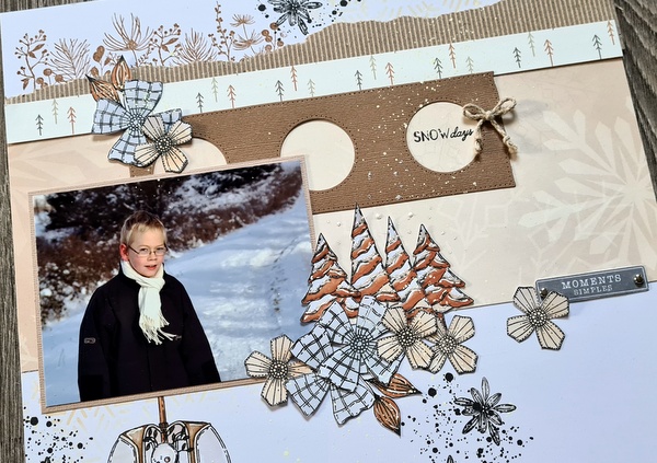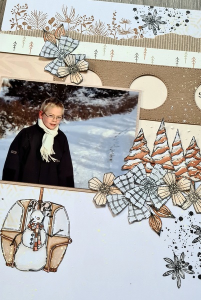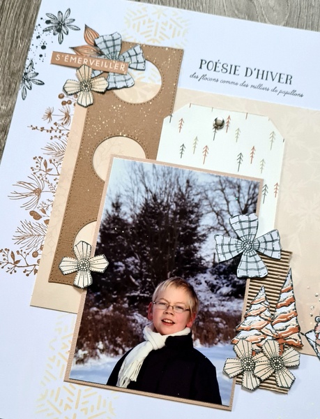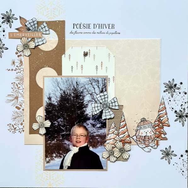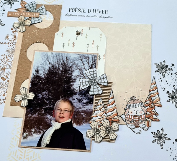 Une double page hivernale, toute douce et pleine de petites mignonneries proposées par la marque Chou & Flowers (collection Storybook). Le papier imprimé provient de la collection Enchantement de Florilèges Design.
