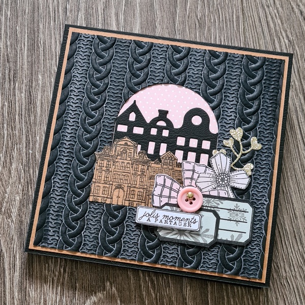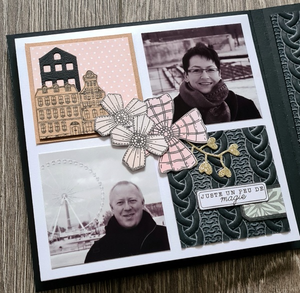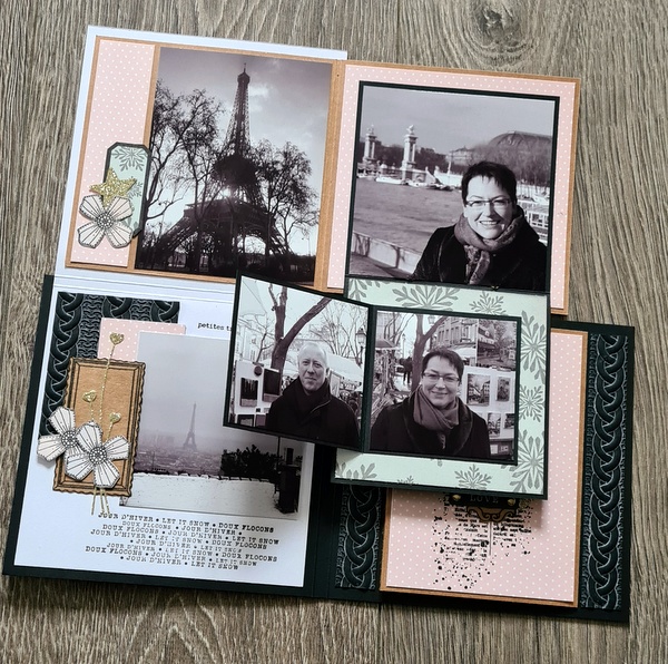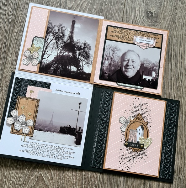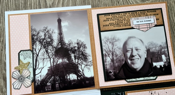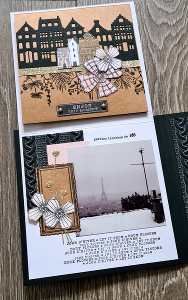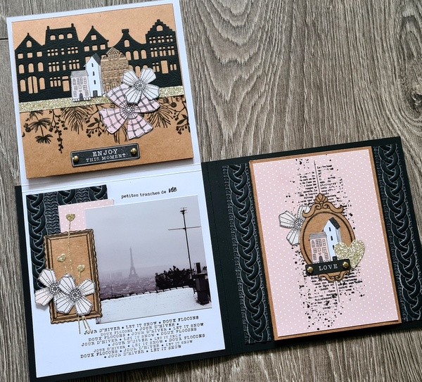 Les photos datent d’il y a très longtemps : souvenir d’une escapade à Paris sous la neige en 2010 (!). Elles collent bien avec le thème de l’album. Cet hiver, j’ai craqué pour tout ce qui représentait des petites maisons (die, tampon)…