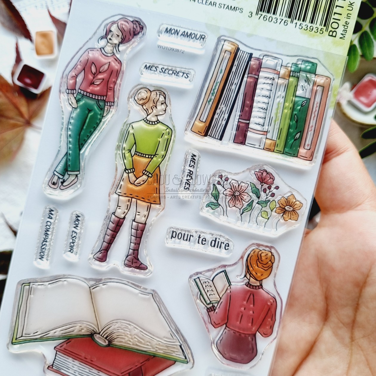 Planche comprenant 14 tampons clear, de la marque Chou & Flowers, collection L’Orée des Bois.