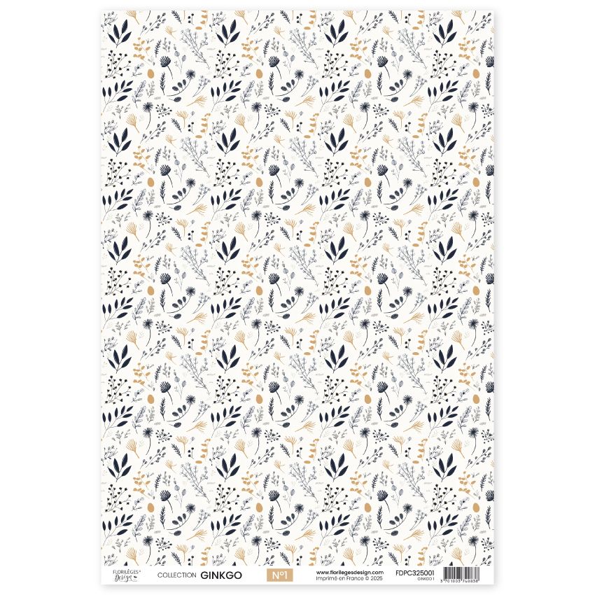 Kit comprenant 4 papiers calques imprimés de la marque Florilèges Design, collection GINKGO.