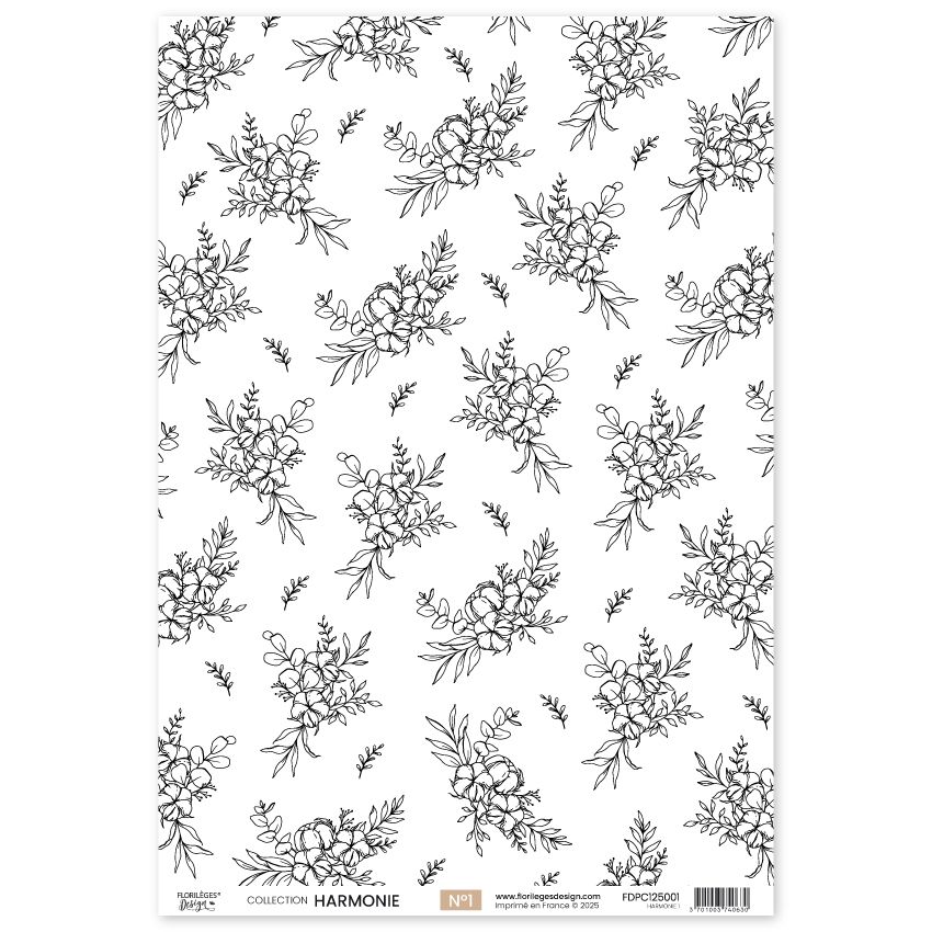 Kit comprenant 4 papiers calques imprimés de la marque Florilèges Design, collection HARMONIE.
