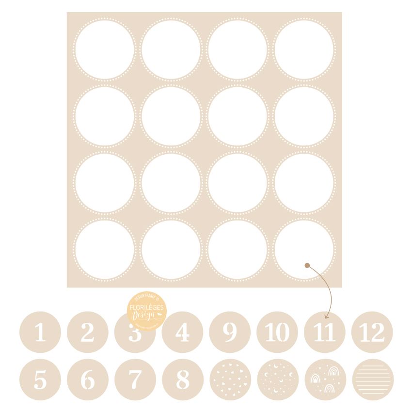 Le kit de pochoirs My Storyboard 3 comprend un pochoir de fond à motifs circulaires.