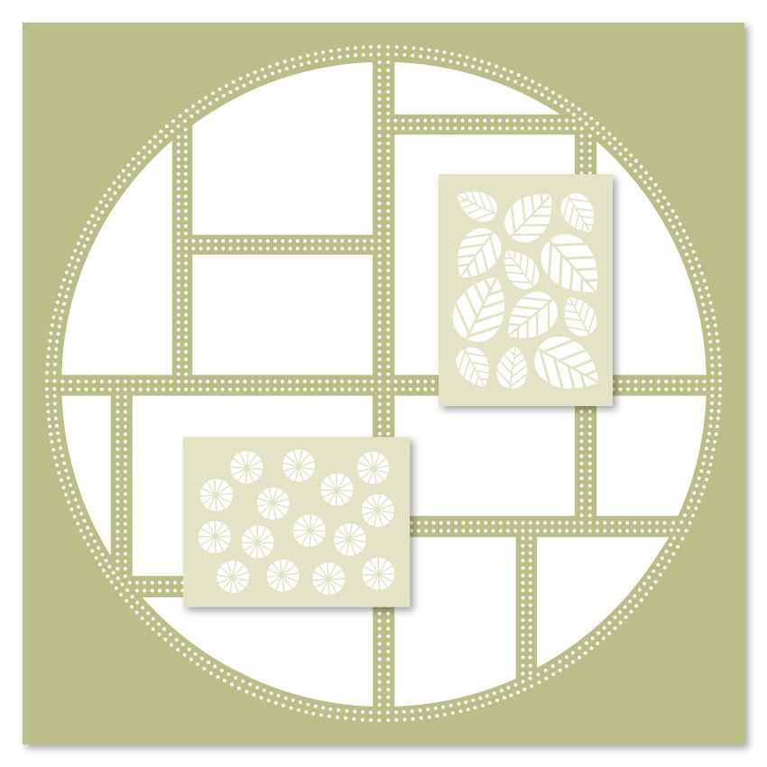 Le kit de pochoirs My Storyboard 5 comprend un pochoir de fond de 30.5 x 30.5 cm.