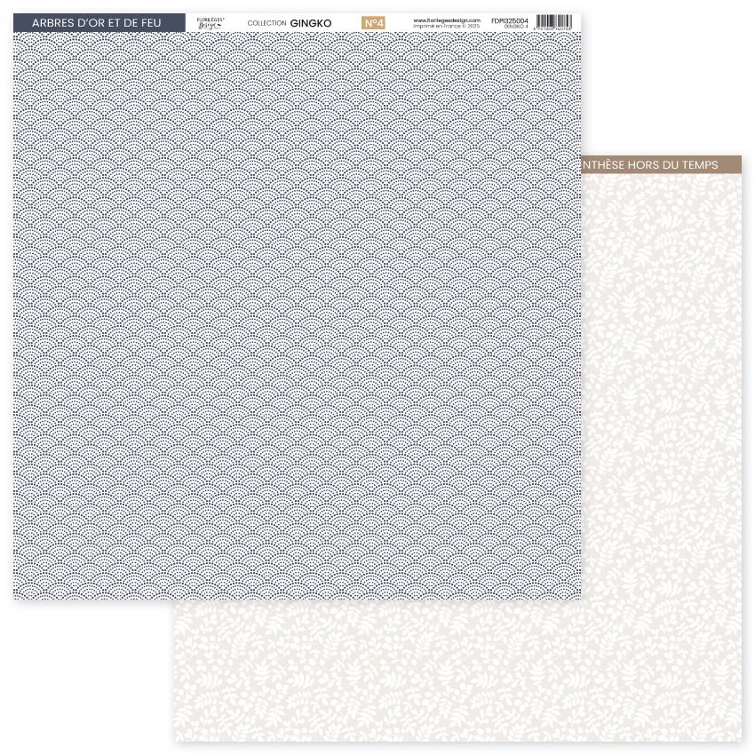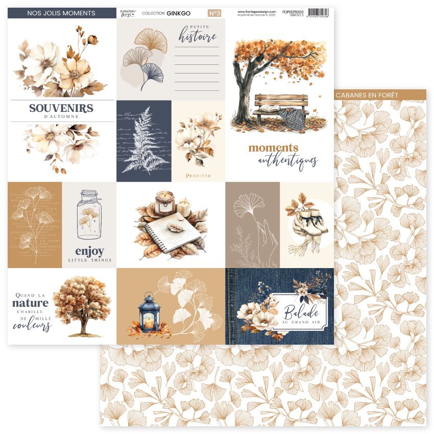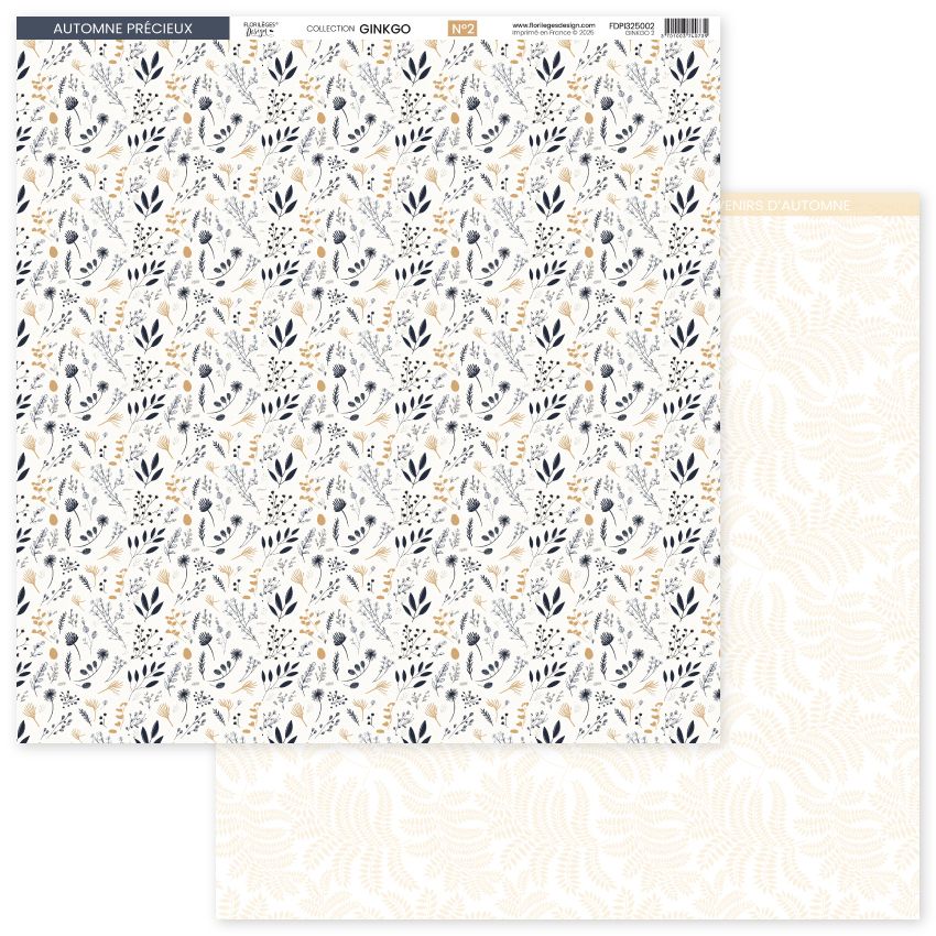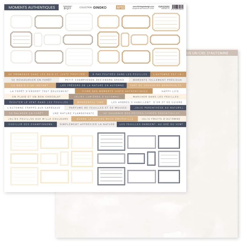 Kit comprenant 10 papiers imprimés recto verso de la marque Florilèges Design, collection GINKGO.