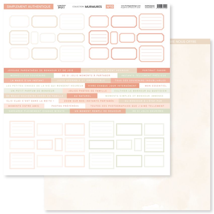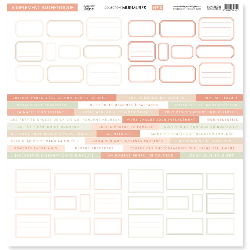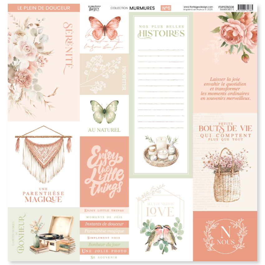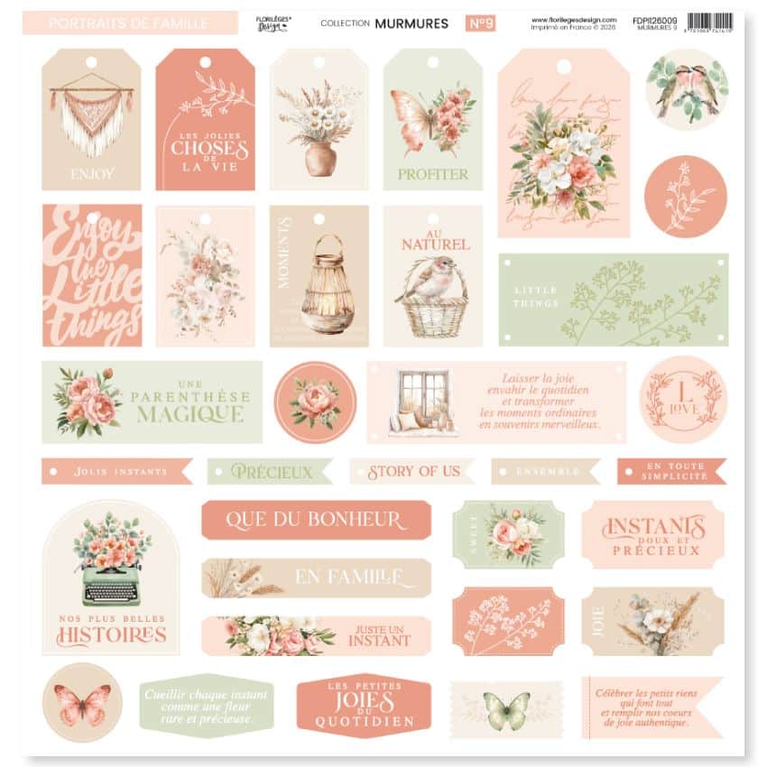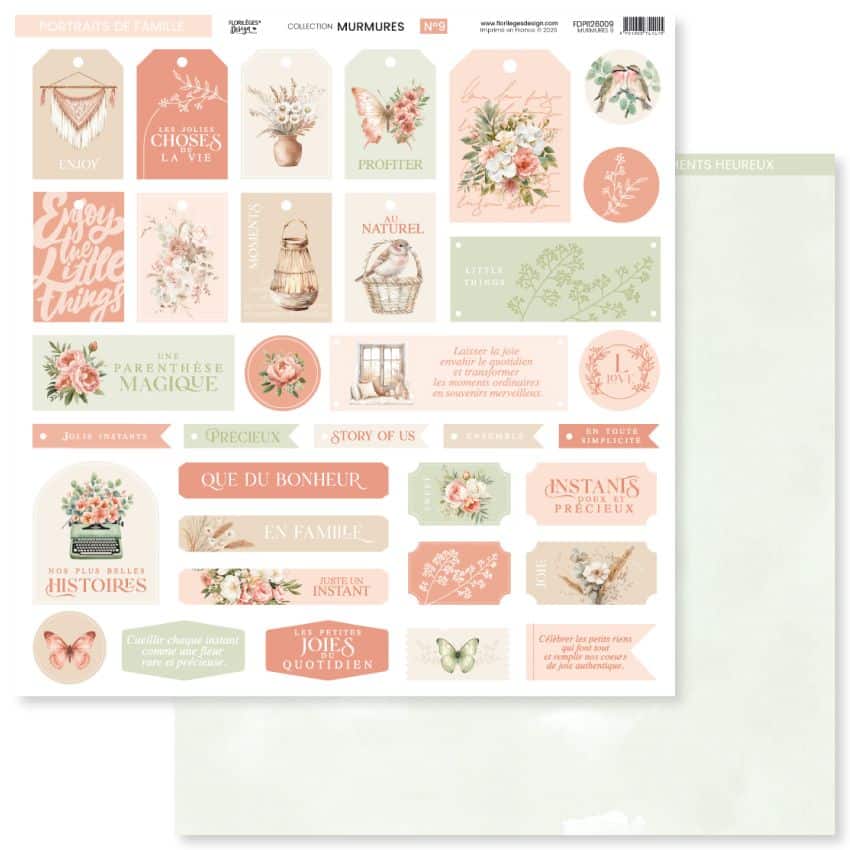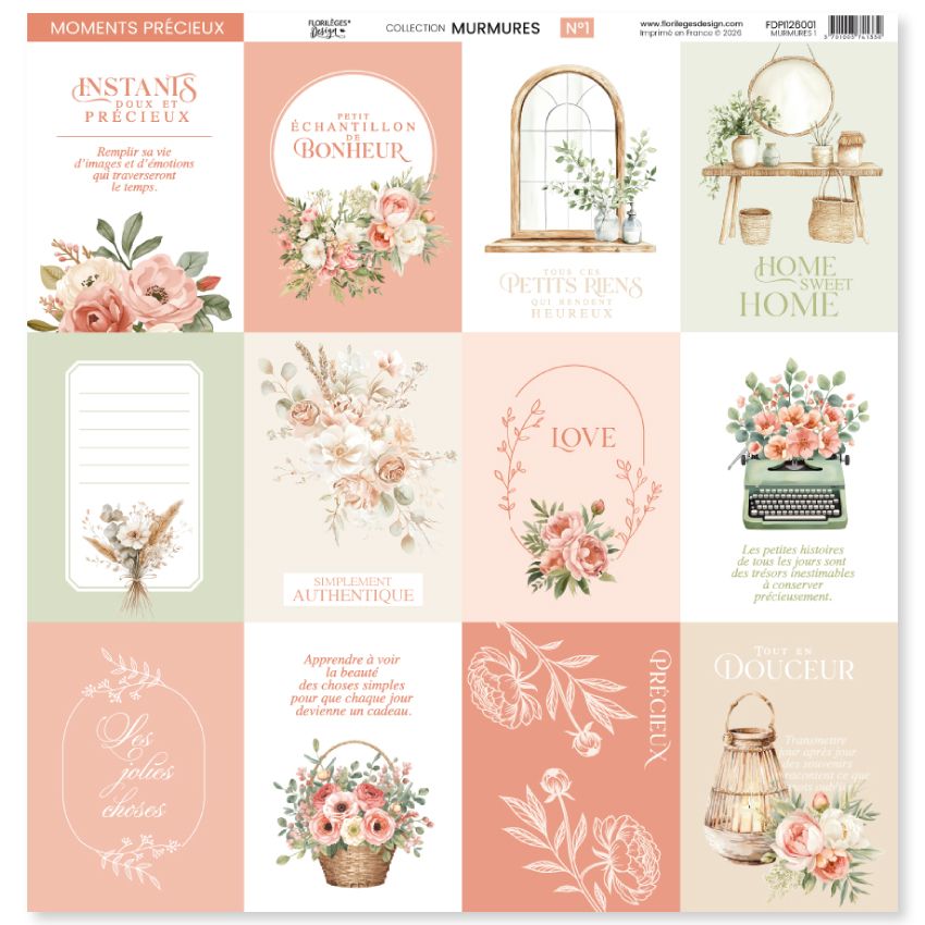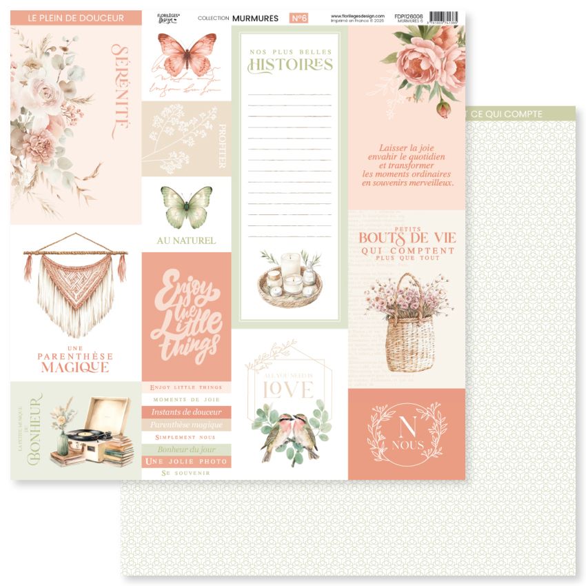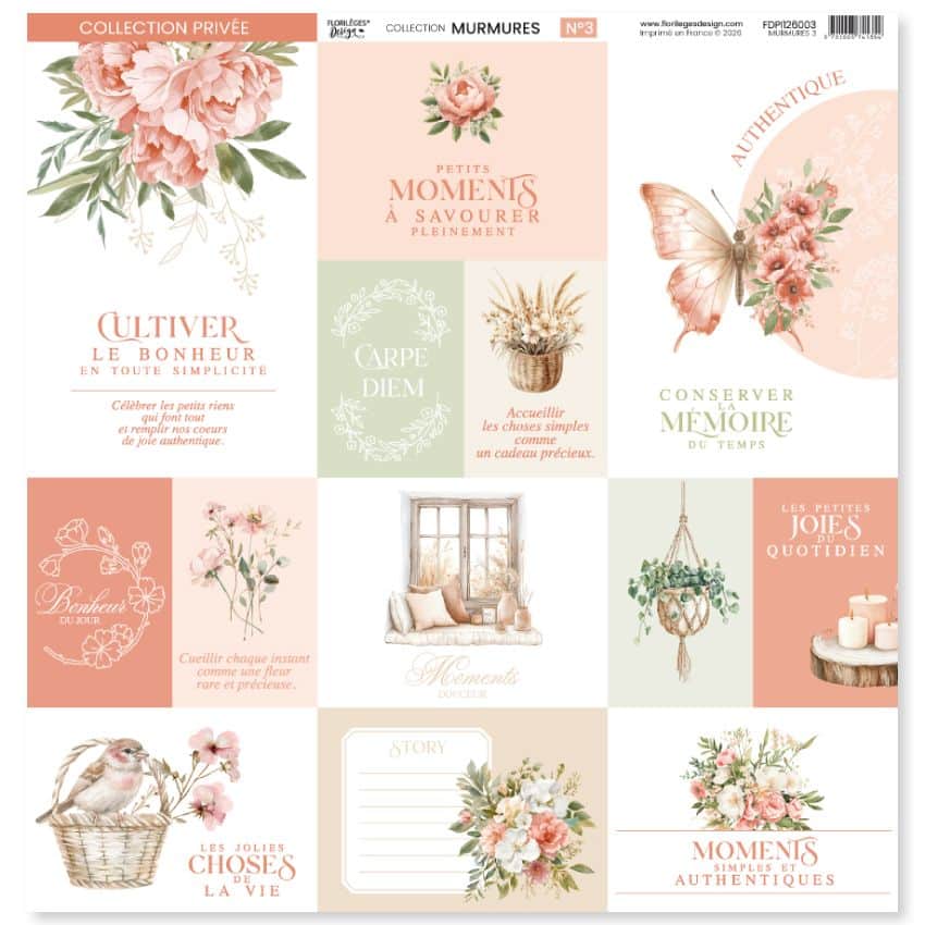 Kit comprenant 10 papiers imprimés recto verso de la marque Florilèges Design, collection MURMURES.