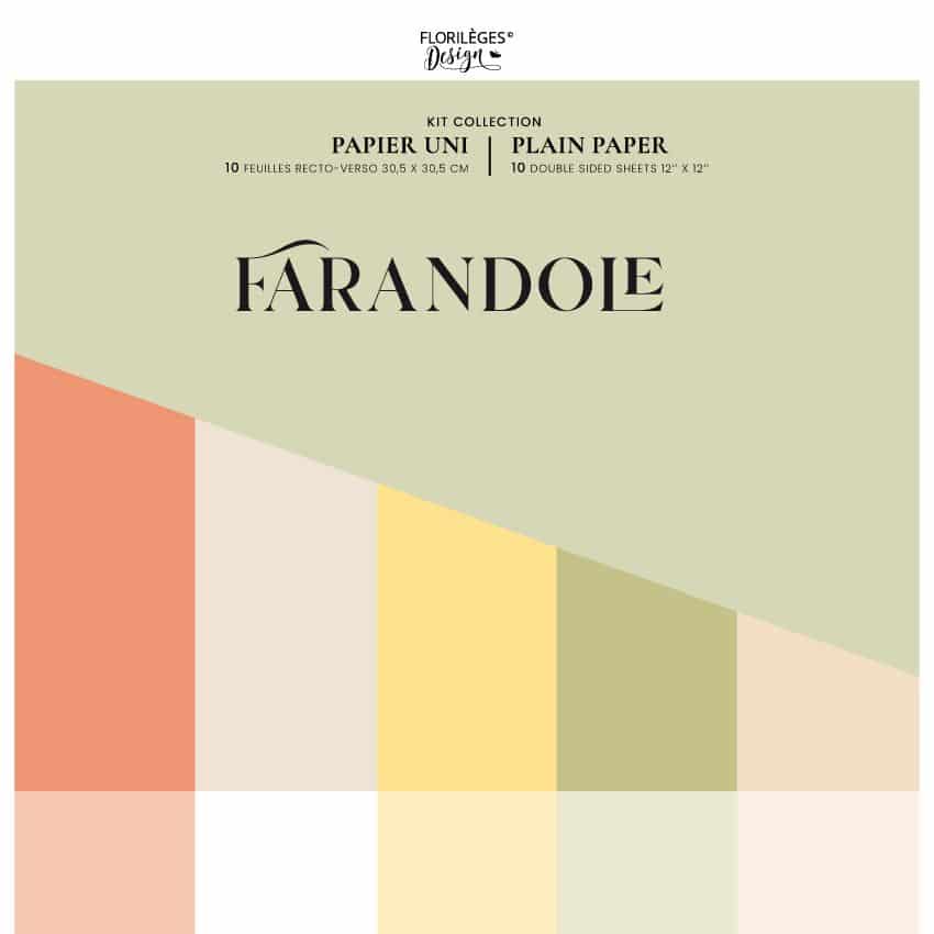 Kit comprenant 10 papiers unis recto verso de 2 tons différents d’une même couleur de la marque Florilèges Design, collection FARANDOLE.