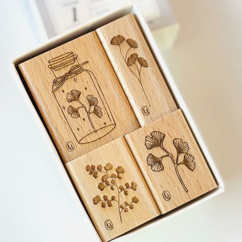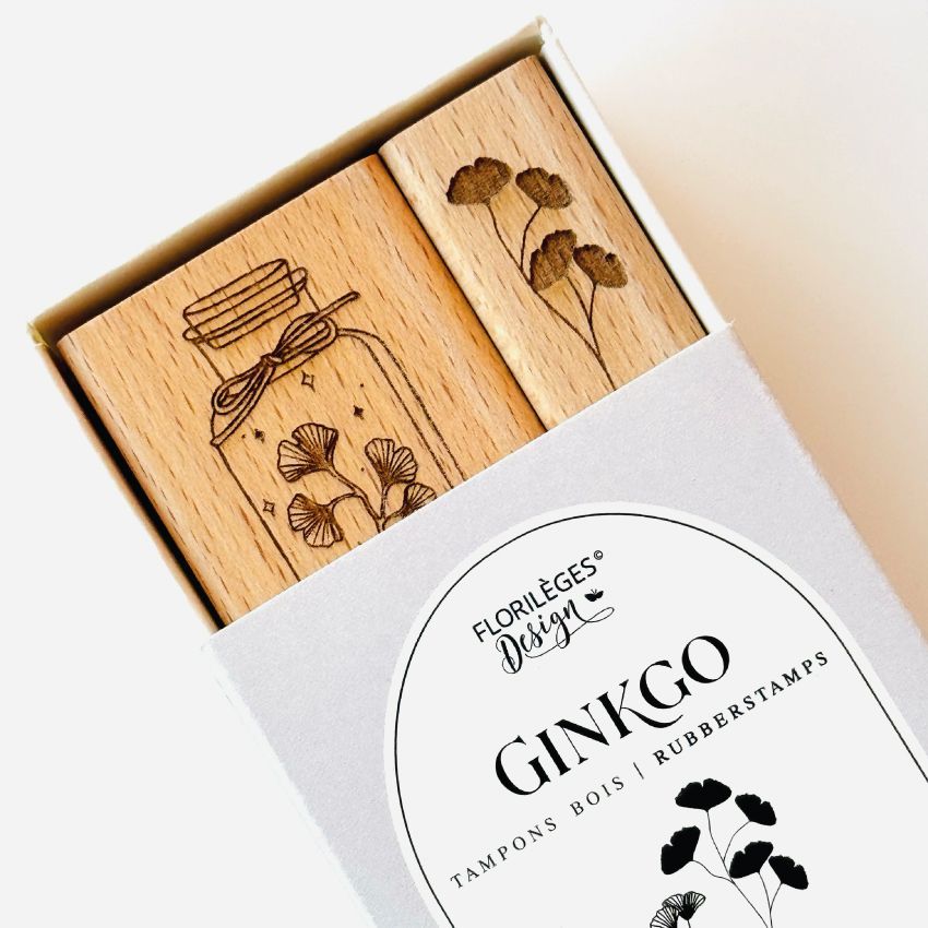 Florilèges Design – Set 4 Tampons Bois GINKGO – PRÉCIEUX GINKGO