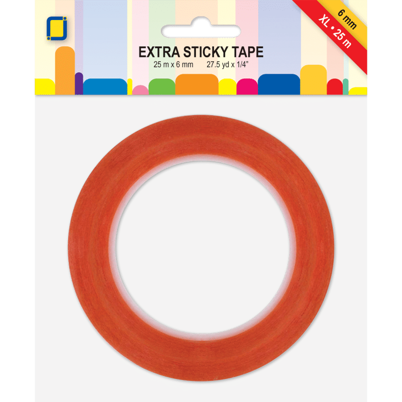 Ruban adhésif double face transparent extra fort de 6 mm de large, en rouleau XL de 25 mètres.