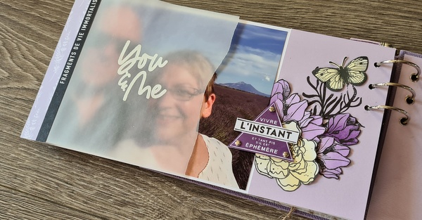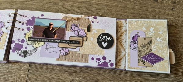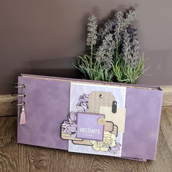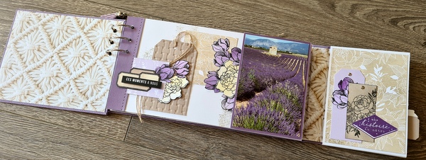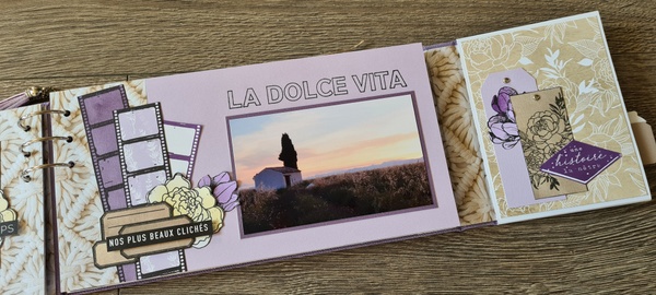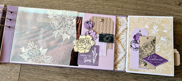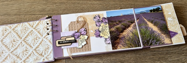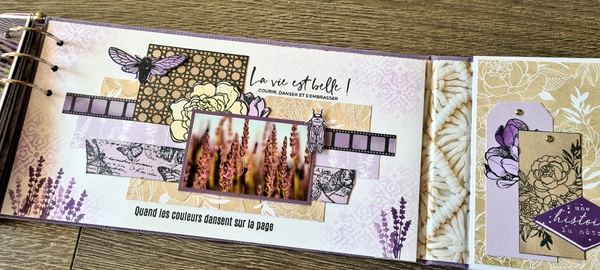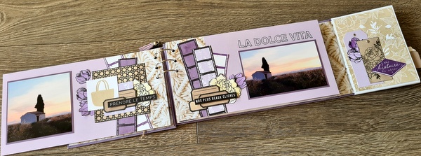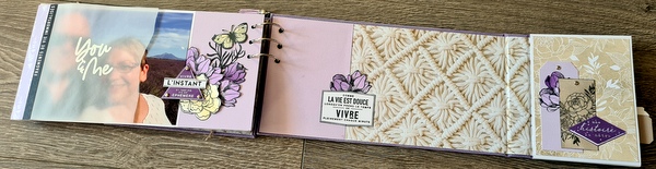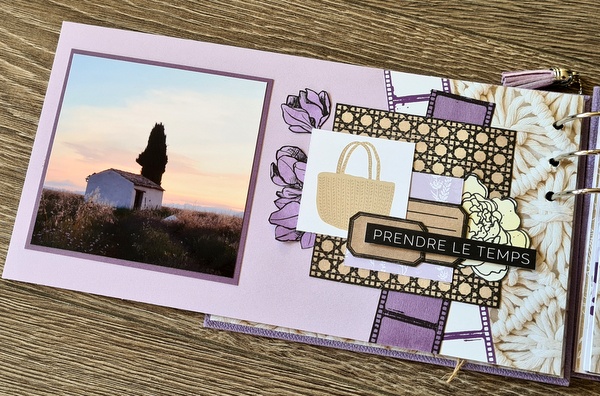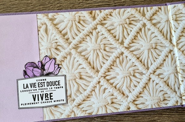 Réalisé avec des papiers Florilèges Design de la collection Dolce Vita et des papiers unis assortis, dans un joli combo blanc, lavande et beige.