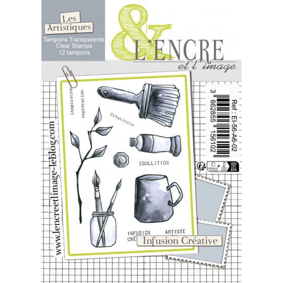 Set comprenant 12 tampons clear de la marque L’Encre et l’Image, collection Les Artistiques.