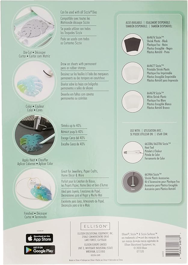 Accueil>Fournitures>Accessoires>SIZZIX – Plastique fou Sizzix Surfacez transparent – CLEAR SHRINK PLASTIC – 663052
