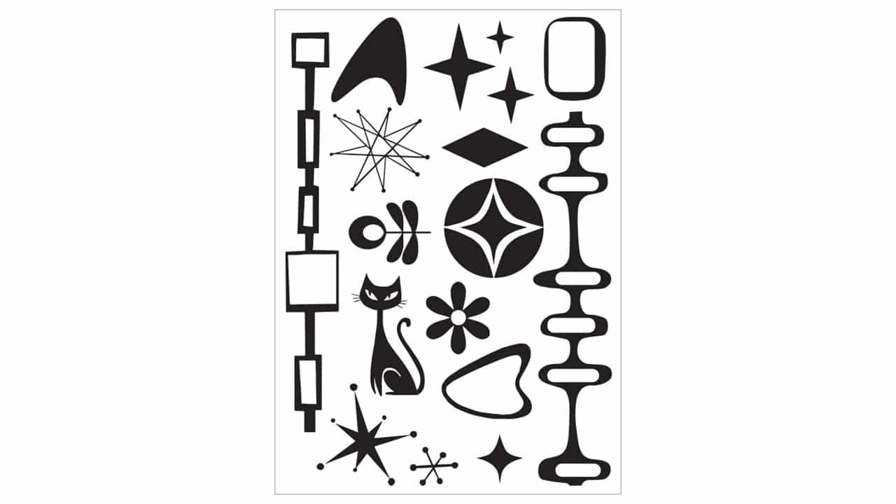 Ensemble comprenant 3 pochoirs et 1 planche de tampons (15 motifs) à utiliser seuls ou avec la nouvelle presse Registration Press Tool  (réf. 666771 vendue séparément).