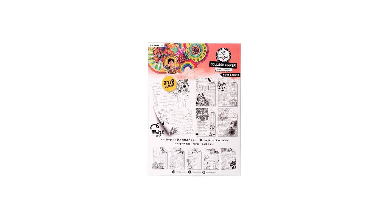 Studio Light – Art By Marlene – Kit de papiers A4 Collage Paper BLACK & WHITE – ABM-25-DPP276
