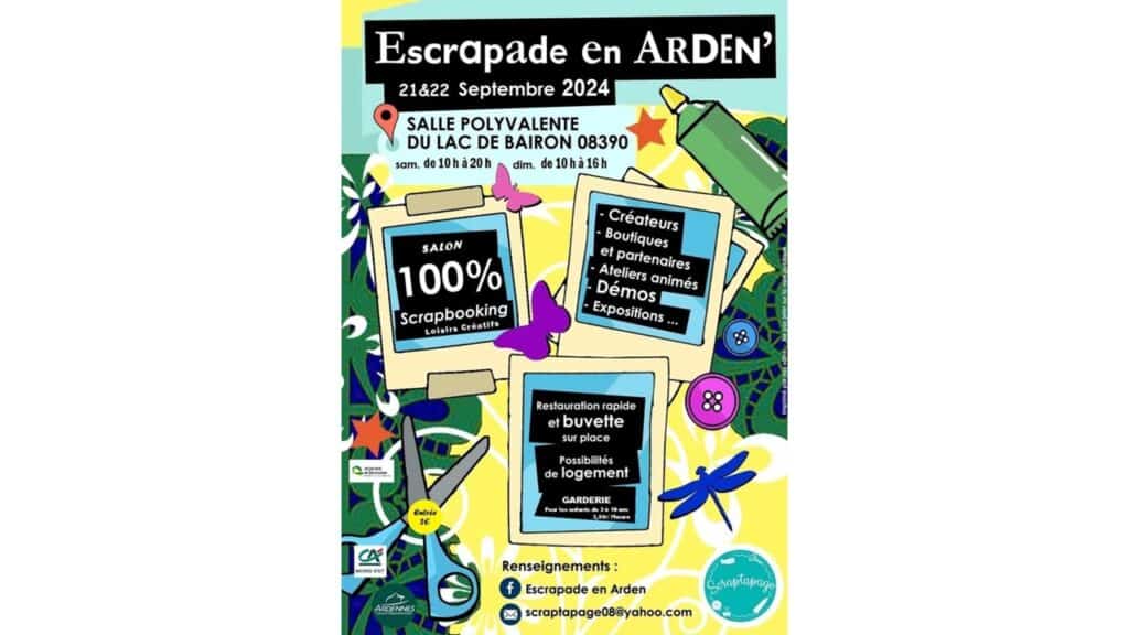 Cette année encore, j’aurai le plaisir de vous accueillir sur mon stand, lors du salon Escrapade en Arden’, qui se tiendra les 21 et 22 septembre, au lac de Bairon.