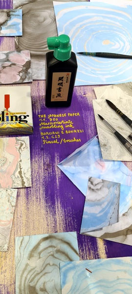 JAPONISANTE : Sur le salon, j’ai vu beaucoup de papiers japonais, dont des papiers marbrés réalisés avec la technique du Suminagashi. J’adore !