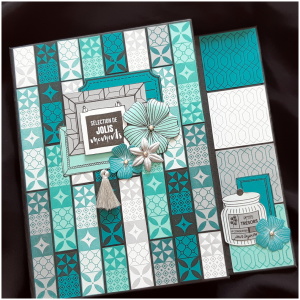 Avec ce tutoriel, vous pourrez réaliser l’album dans votre propre combo de couleurs, en choisissant vos papiers ICI.