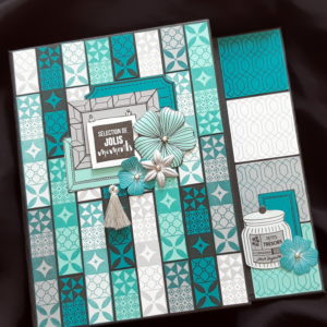 Avec ce tutoriel, vous pourrez réaliser l’album dans votre propre combo de couleurs, en choisissant vos papiers ICI.