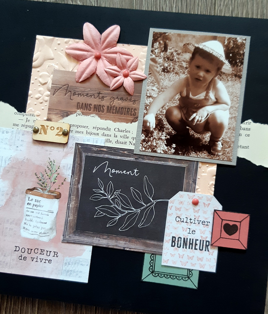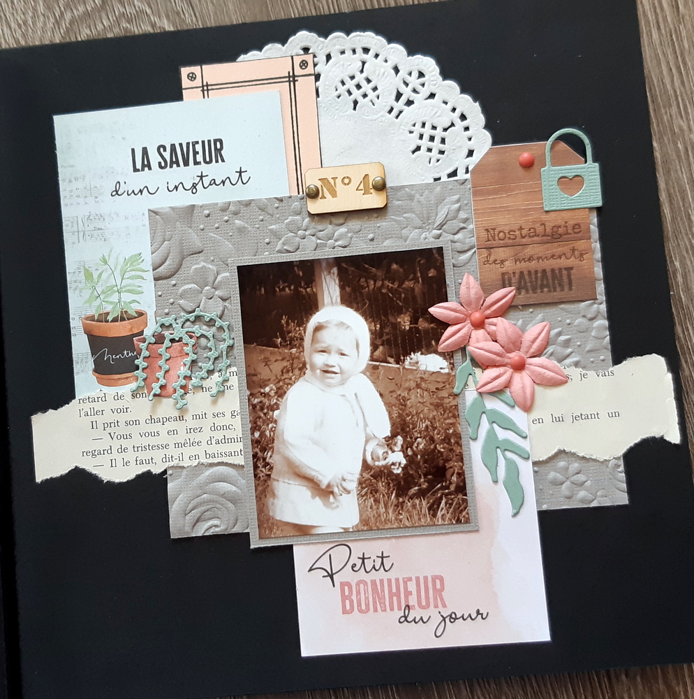 Je vous présente l’album Parfum de Nostalgie, réalisé avec les papiers, embellissements et matrices de découpe de la dernière collection Florilèges Design La Maison de Jeanne.